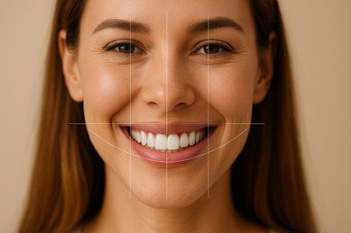 Analyse esthétique complète (proportions, symétrie, lignes du sourire).