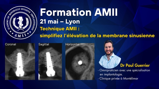 Cette formation d’une journée vous propose une approche moderne et simplifiée de l’élévation du sinus selon la technique AMII. À travers une combinaison de théorie et de pratique, vous découvrirez des concepts innovants permettant d’optimiser vos protocoles chirurgicaux tout en préservant au maximum les tissus.